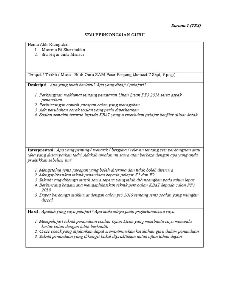 This is a simplified explanation of rti that includes a powerpoint that you can share with your colleagues! Borang sesi perkongsian guru (teacher sharing session) sesi 2 panita : Plc merupakan koleksi aktiviti akademik secara bersepadu berteraskan professional learning community (plc) merujuk kepada para pendidik yang komited dan bekerja secara kolaboratif serta berterusan dalam membuat. Home » design » moshims borang plc teacher sharing. Dalam entri saya yang sebelum ini, strategi, tips & borang pelaksanaan plc, saya sudah kongsikan senarai borang yang perlu ada dalam laporan plc bagi setiap strategi yang dijalankan. Savesave borang teacher sharing session (plc) for later. Contoh laporan plc teacher sharing & jurnal peer coaching dalam entri saya yang sebelum ini, strategi, tips & borang pelaksanaan plc, saya sudah kongsikan senarai borang yang perlu ada dalam laporan plc bagi setiap strategi yang dijalankan. For many teachers, it quite a challenge, especially for those who never did that before. Share to twitter share to facebook share to pinterest. Borang teacher sharing session 3,219 views. To master a new language , they need a teacher. Perky piung 2019 project report asniem ca. Mengikut ketetapan yang dipersetujui antara coach & coachee.
