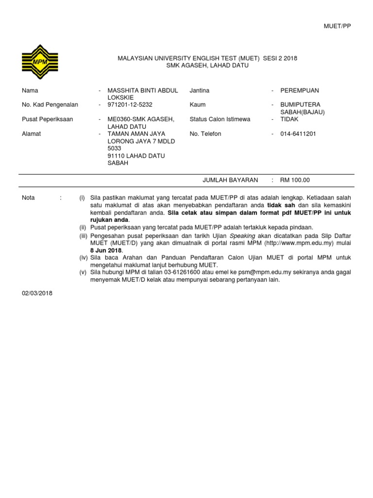 100%(2)100% found this document useful (2 votes). 55 отметок «нравится», 1 комментариев — uitmsi perak (@uitmsi) в instagram: After the final paper of the muet which was listening that day i felt so relieved. Cara membuat pendaftaran online muet sesi 1, 2 & 3 2021. Perhatian buat calon yang bercadang untuk menduduki peperiksaan muet sesi mac 2018.